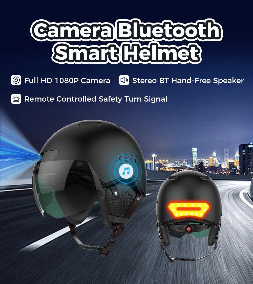خوذة دراجة بلوتوث ذكية مع إشارة انعطاف ومصابيح خلفية للبالغين ، كاميرا رياضية ، مسجل ركوب وامض ، من من نوع P ، 60 إطارًا في الثانية