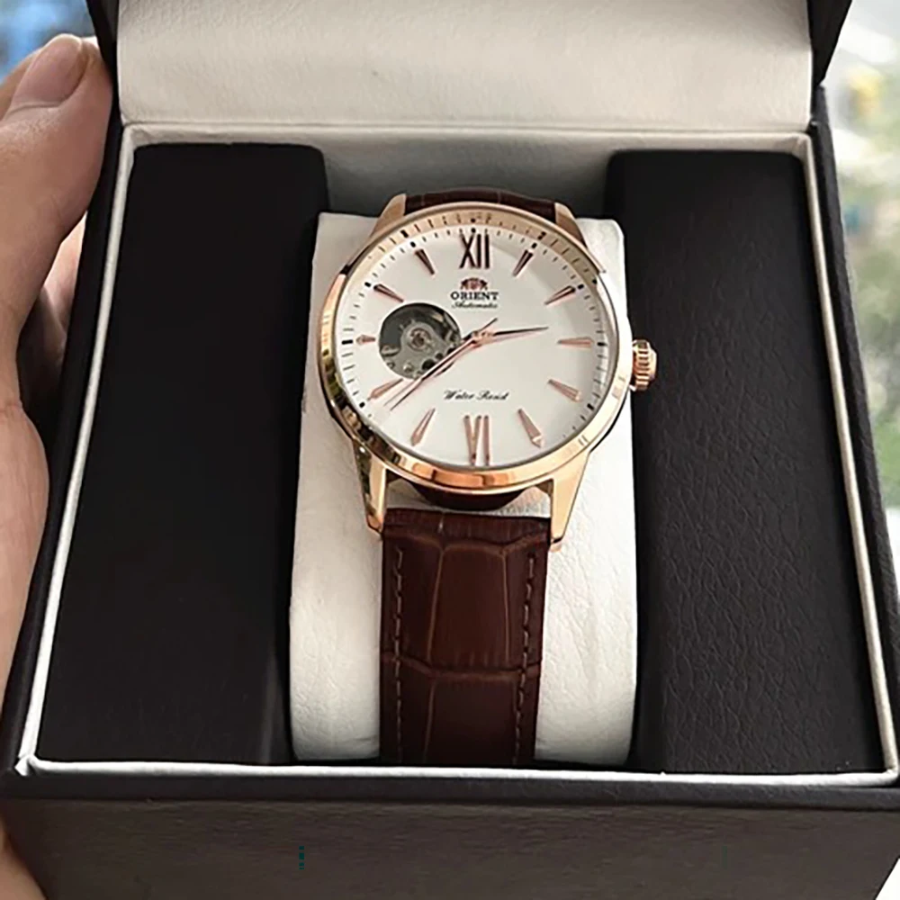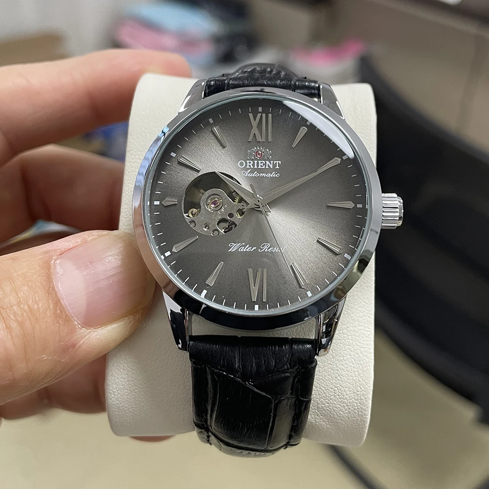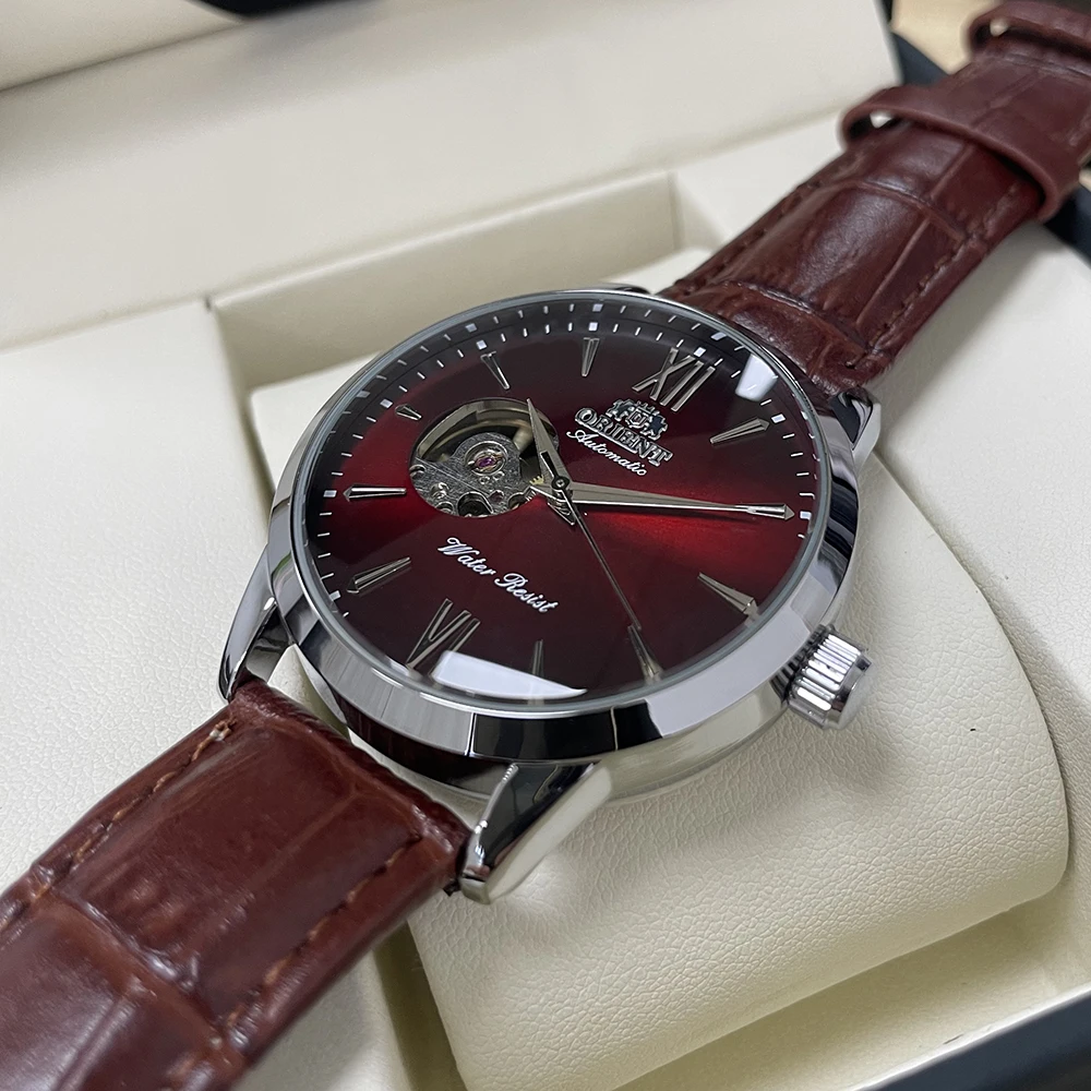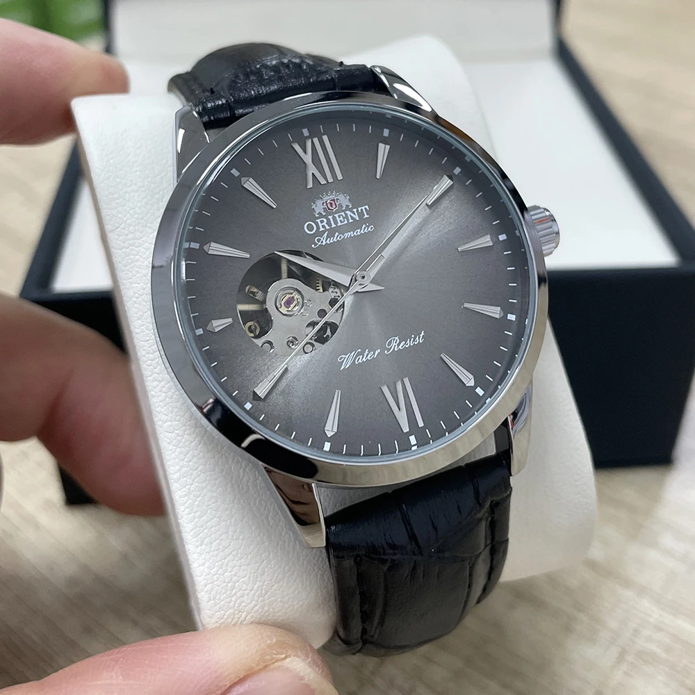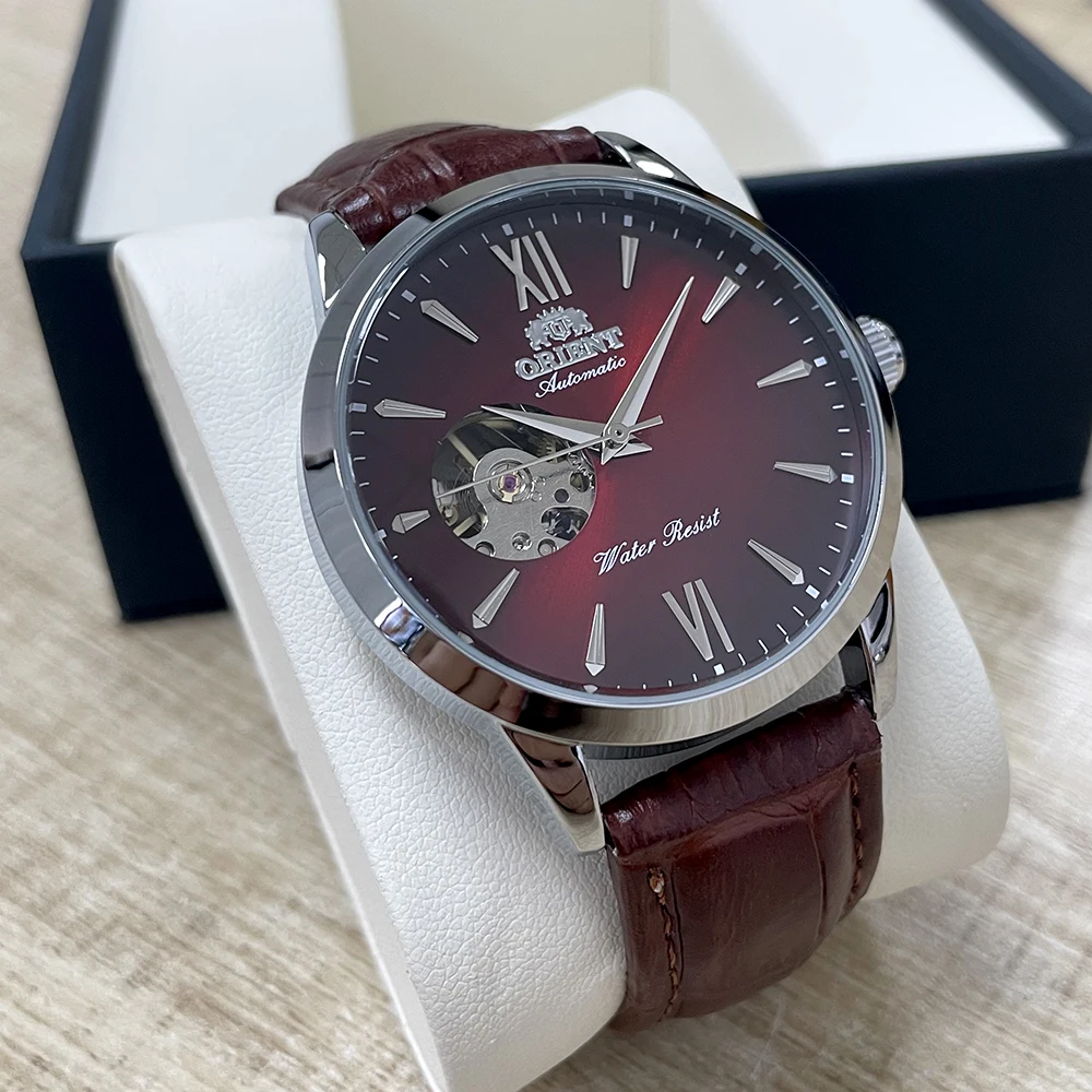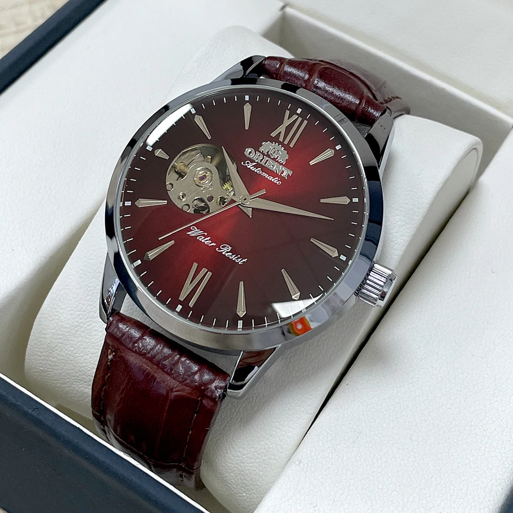 ساعة أورينت للرجال أوتوماتيكية مفتوحة القلب بمينا أزرق وسوار من الفولاذ المقاوم للصدأ كاجوال فستان ساعة يد 30 متر مقاومة للماء